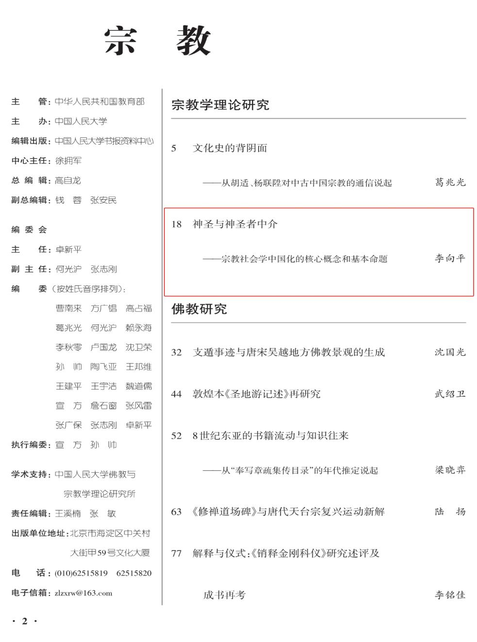 李向平教授学术论文被人大复印报刊资料《宗教》全文转载