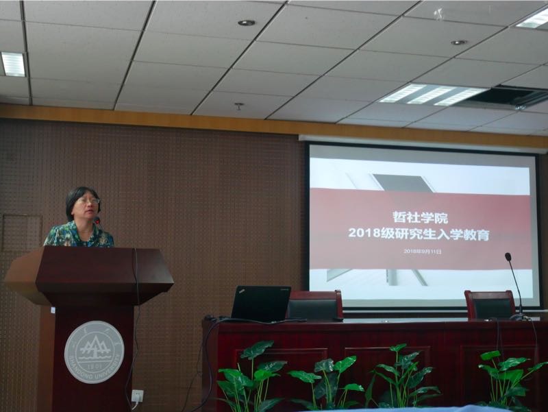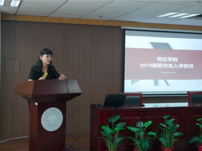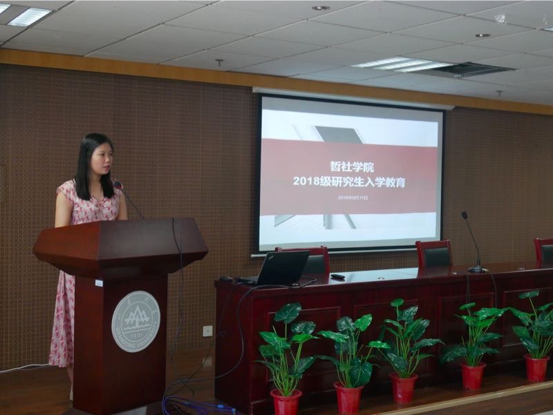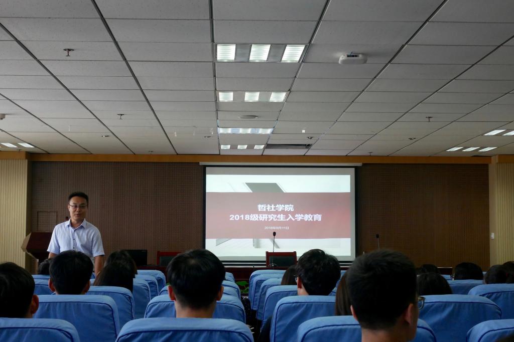 毛永强首先对2018级研究生的到来表示热烈的欢迎。他表示,研究生相对于本科阶段在学术和生活方面都有了更高的要求,对于同学们是一种压力,也更是一种动力。作为研究生新生,同学们应着眼敦品立学,沉潜学术、综合发展,明确个人发展规划和路径。他强调了“立业先立人”的重要性,希望同学们锤炼品格,与人为善,恪守学术道德和社会公德。毛永强还结合近日的社会热点问题,叮嘱各位同学注意个人的财产和人身安全,提高防范能力。陶莉从研究生生育管理规章制度和图书资料室的使用两方面进行了介绍。她首先向新生说明了研究生在读期间的生育制度,并强调了遵守规章制度的重要性。其次,她讲解了小艾